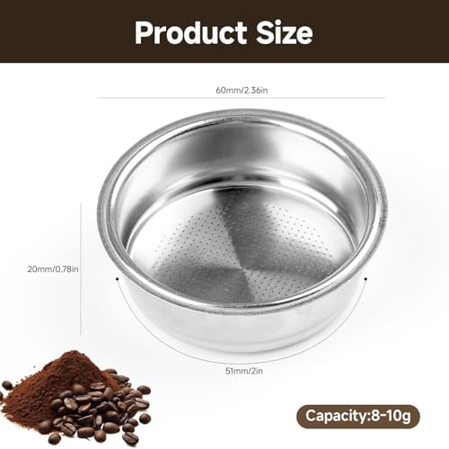 Echa un vistazo al Ruvan 51mm Filtro De Café, Cesta Tamiz De Filtro De Acero Inoxidable, Colador Para Café Espresso, Accesorio Para Cafetera Espresso Compatible Con Máquina De Café Espresso Delonghi, Breville (1 Taza) y conoce sus prestaciones, precio y garantía.