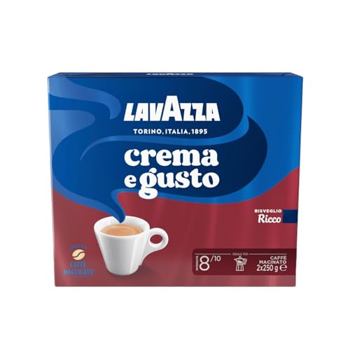 Detalles del Lavazza, Crema e Gusto Ricco, Café Molido Natural, Ideal para Cafetera Italiana, de Filtro y Francesa, con Notas de Chocolate, Arábica y Robusta, Intensidad 8/10, Tueste Oscuro, 250 g: