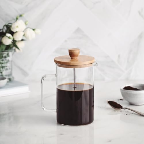 Puedes comprar ahora la KICHLY Cafetera de prensa francesa - portátil con triple filtro - Vidrio resistente al calor con carcasa de acero inoxidable - Jarra grande para el hogar - 1000ml / 1 Litro / 34Oz - Negro por .