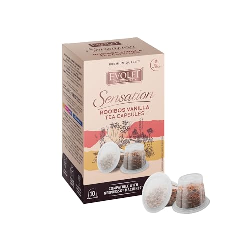 Echa un vistazo a la EVOLET - Cápsulas Premium de Té Rooibos Vainilla - Compatibles con Nespresso - 10 Cápsulas - Propiedades Isotónicas - Infusiona en Frío y Caliente y descubre sus características, precio y garantía.