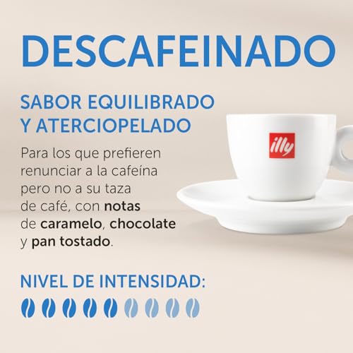 El precio de la illy, Café en Cápsulas Compatibles en Aluminio DESCAFEINADO, 100% Arábica con Notas de Caramelo, Chocolate y Pan Tostado, Sin Cafeína, Sabor Equilibrado, 10 Paquetes de 10 (100 Cápsulas en Total) es de .