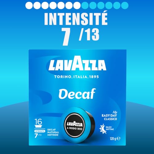 Si quieres conocer más sobre la Lavazza A Modo Mio Dek Cremoso, 1 Paquete de 16 Cápsulas de Café, Descafeinado Espresso, 100 % Arábica, Sabor Completo y Equilibrado, Intensidad 7/10, Tostado Medio, éstas son sus curacterísticas principales: