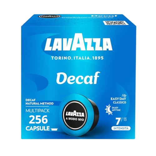 En este TOP 10 de capsulas lavazza a modo mio compatibles no podemos dejar de mencionar la Lavazza A Modo Mio Dek Cremoso, 256 Cápsula Caffè, per un Espresso Decaffeinato con Note di Mandorle e Canditi, 100% Arabica, Intensità 7/13, Tostatura Media, 16 Confezioni x 16 Cápsula